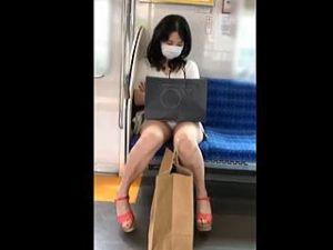 電車待ちをしているお姉さんの後ろに回り込んで逆さ撮りでお尻に食い込むパンティを盗撮!