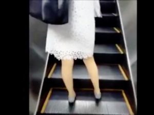 パンチラ動画:エスカレーターで女子大生のパンティ