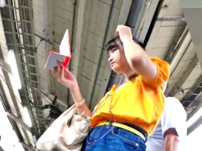 電車待ちをしているお姉さんの後ろに回り込んで逆さ撮りでお尻に食い込むパンティを盗撮!